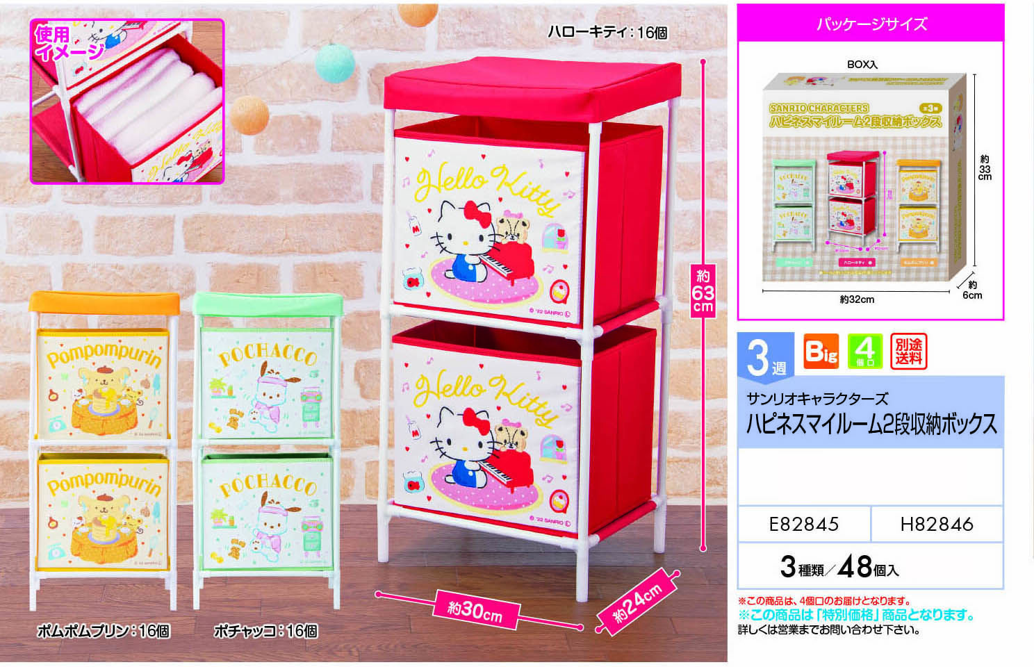 サンリオキャラクターズ ハピネスマイルーム2段収納ボックス ※4個口