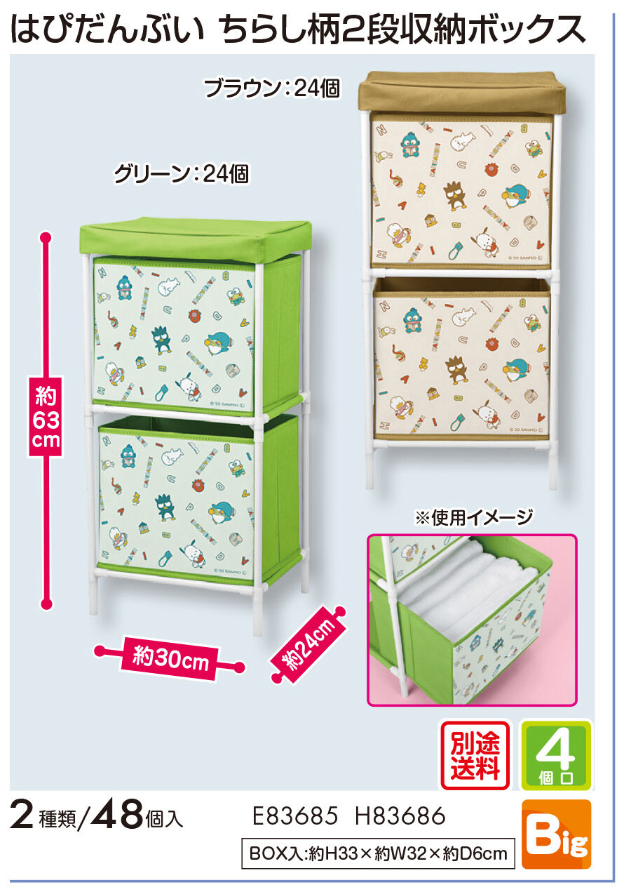 はぴだんぶい ちらし柄2段収納ボックス ※4個口
